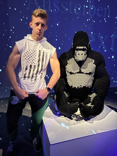 While we were in the last main room, which featured only builds of animals, the following thoughts hit me as I studied the tall LEGO giraffe steadily standing in front of me. Irrefutably this giraffe had been designed and built by Nathan Sawaya. The bricks of various colors and sizes and shapes had been intentionally placed so the finished product would be one clearly resembling my favorite animal. As I scanned the room and saw impressive LEGO builds of a cheetah, tiger, polar bear, flamingo, gorilla, and other creatures, they too were undoubtedly the work of a skilled human.